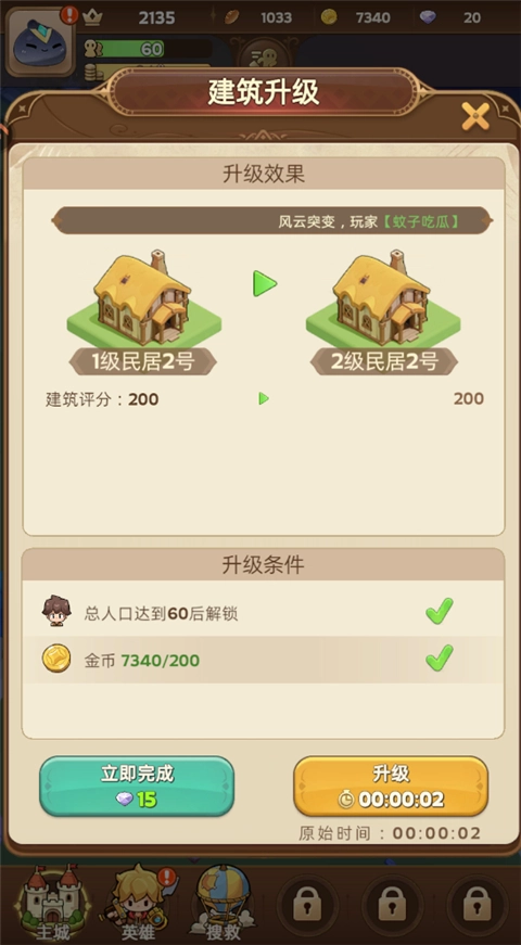 2、英雄小队24小时执勤,随时行动搜救被困村民,保障王国生产安全,提升臣民满意度。