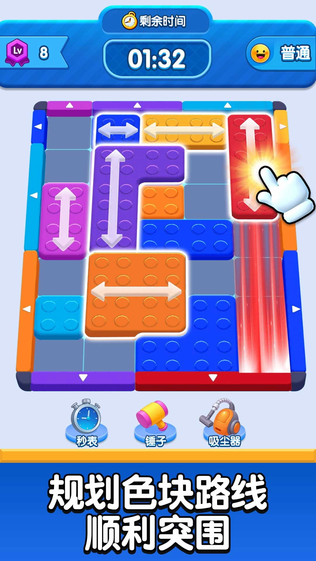 在移动方块前预先规划好每一步的行动路线,防止出现方块被卡住或者动弹不得的状况。可以先试着把目标方块周边的阻碍物一点点清除掉,这样就能为它开辟出一条可以顺利移出去的通道了。