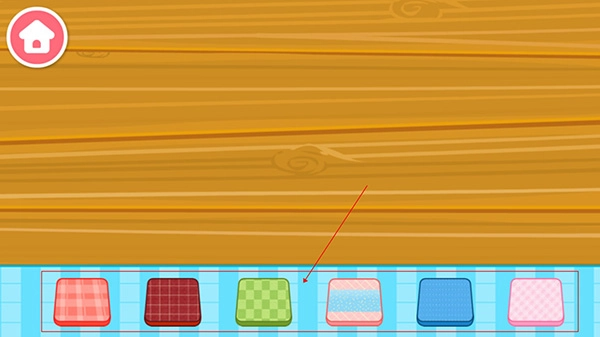 游戏启动后,会先进入生日派对的筹备环节,第一步是让宝宝挑选一块心仪的桌布。