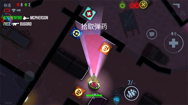 游戏采用俯瞰视角(即上帝视角),玩家可通过左手摇杆操控角色移动,右手按键则用于执行换弹、治疗等动作。整体操作较为简单,对新手十分友好。