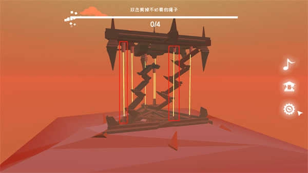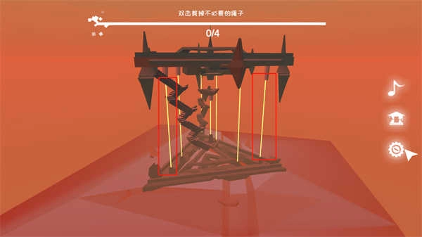 第三关的通关要求是剪断六根绳子,玩家得先把位于四个角的绳子剪掉。