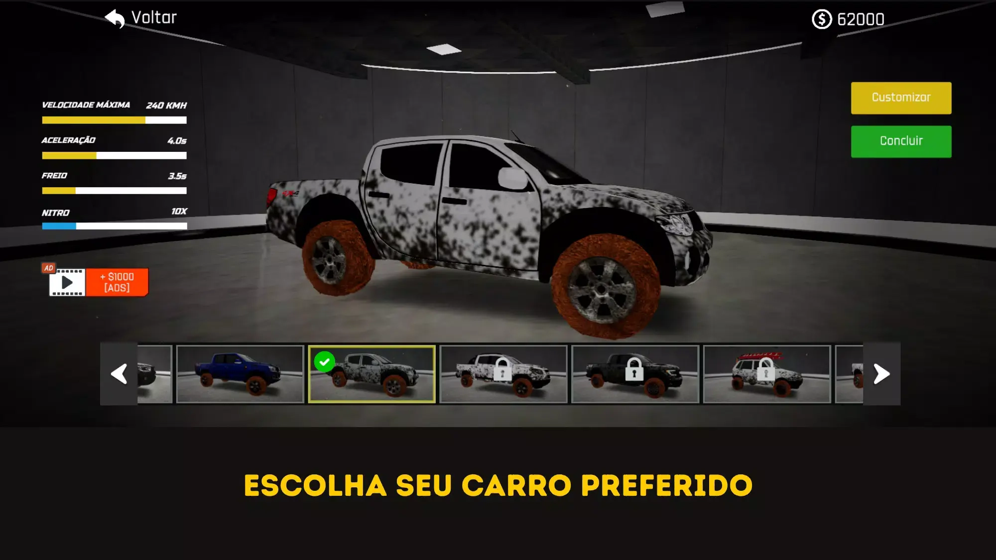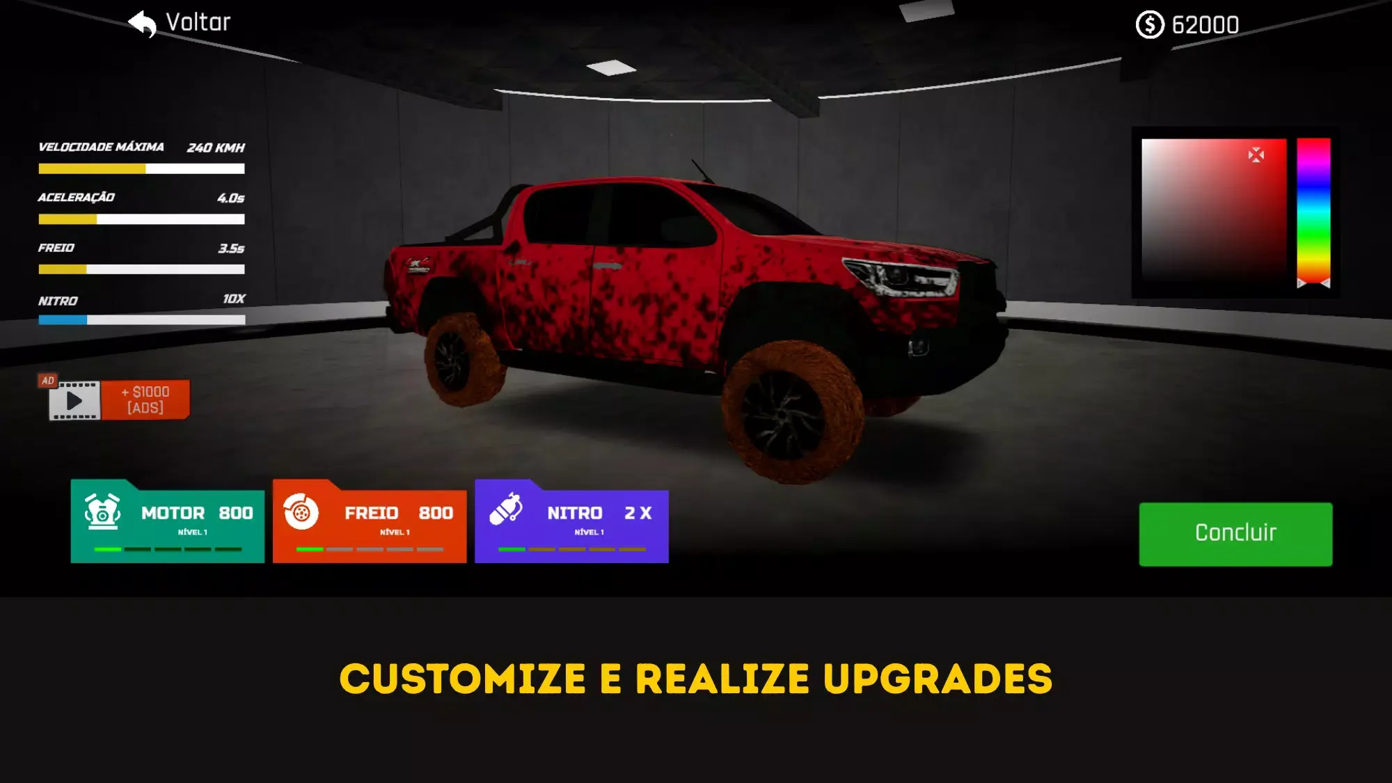 完成比赛,升级并赚取金币来解锁新赛车和升级。