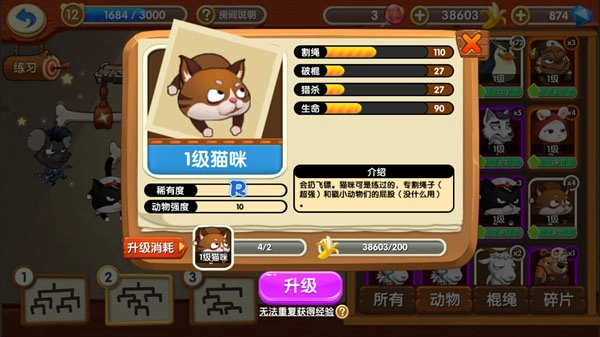 猫咪会扔飞镖哦,这可是练过的本事——既能精准割断绳子(超厉害的!),也爱戳戳小动物们的屁股(不过这招没什么实际用处就是啦)。