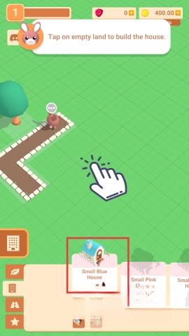 首先点击空着的区域,选中“Small-Blue-House”来建造它,开启你的建设旅程。