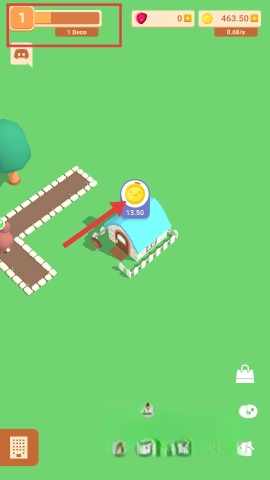 小屋建造完成后,点击屋顶上的金币进行收集,通过不断积累资金来为后续发展做准备。