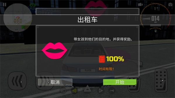 在屏幕左上角的地图上能看到目的地的方向,我们得过去接上乘客。