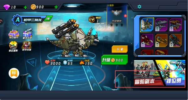 进入游戏后,可选择冒险副本或排位赛模式,确认选择后便能直接开启战斗,从而开启机甲超人的闯关之旅。