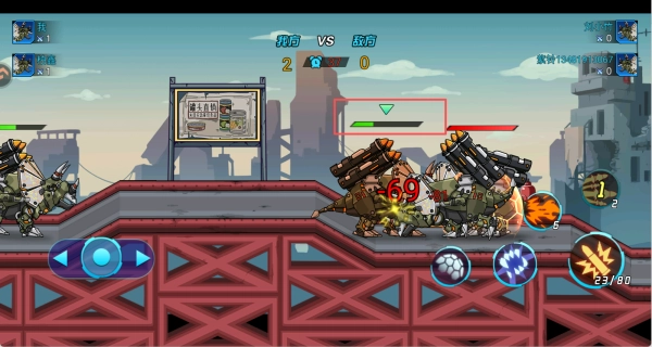 当遭遇敌人时,点击右侧的技能按钮,释放火箭拳、激光剑之类的技能来消灭对手,以此完成当前关卡的战斗任务。