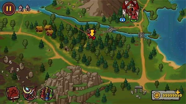 在世界地图上点击带有箭头标识的红色关卡,就能触发剧情动画并进入该关卡。