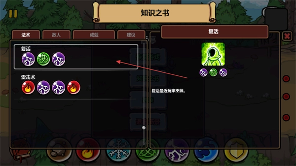 在关卡地图里,你可以点击左下角的知识之书来了解魔法的使用方法。