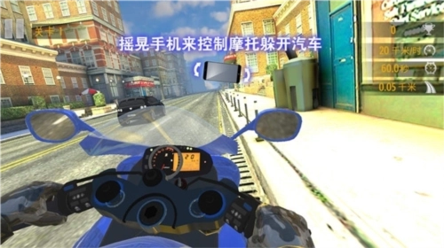 4、此外,在骑行过程中遇到车辆时,还能通过摇晃手机来操控摩托车进行躲避。