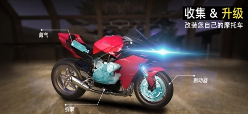 3、高度自定义:玩家能够对自己的摩托车进行自定义设置,涵盖引擎、轮胎、刹车等部件。同时,还可以借助升级操作来增强摩托车的性能表现。