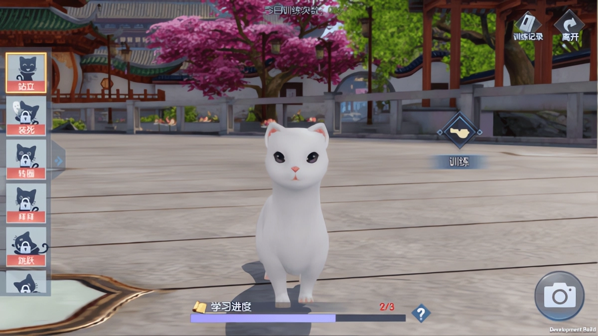 每只爱宠都能掌握不同的动作技能,谁不希望自家爱宠对着自己撒娇卖萌呢?点击训练按钮就能进入训练界面,可引导爱宠练习坐下、埋屎、转圈等各类姿势。(温馨提示:当前版本仅开放狸花猫与白貂的宠物训练功能)