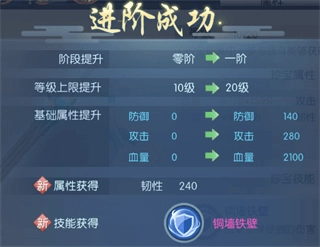 每次进阶成功后,肯定能得到1个不会随着珍宝升级而提高的新属性固定值,而且还有一定概率获取1个稀有的珍宝技能,不过要注意,作为进阶材料的珍宝所带的技能是不会继承到主珍宝上面的哦~