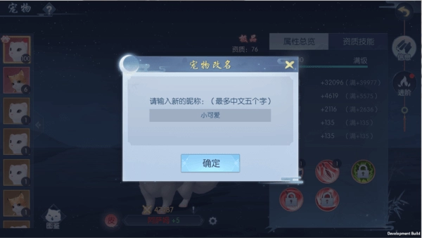 要是玩家想给自家爱宠起个软萌可爱的名字,直接点击改名按钮就能修改啦,而且全程都是免费的哦。
