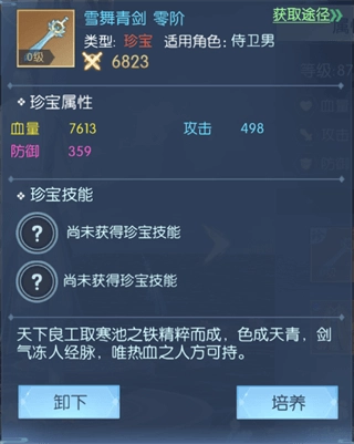 珍宝升级有两种途径:一是佩戴后参与战斗积累经验,二是使用陨铁道具手动增加经验值;其等级上限为60级。每次提升等级时,珍宝会从攻击、防御、血量这三种属性中随机选取一种,并获得对应的固定数值加成。