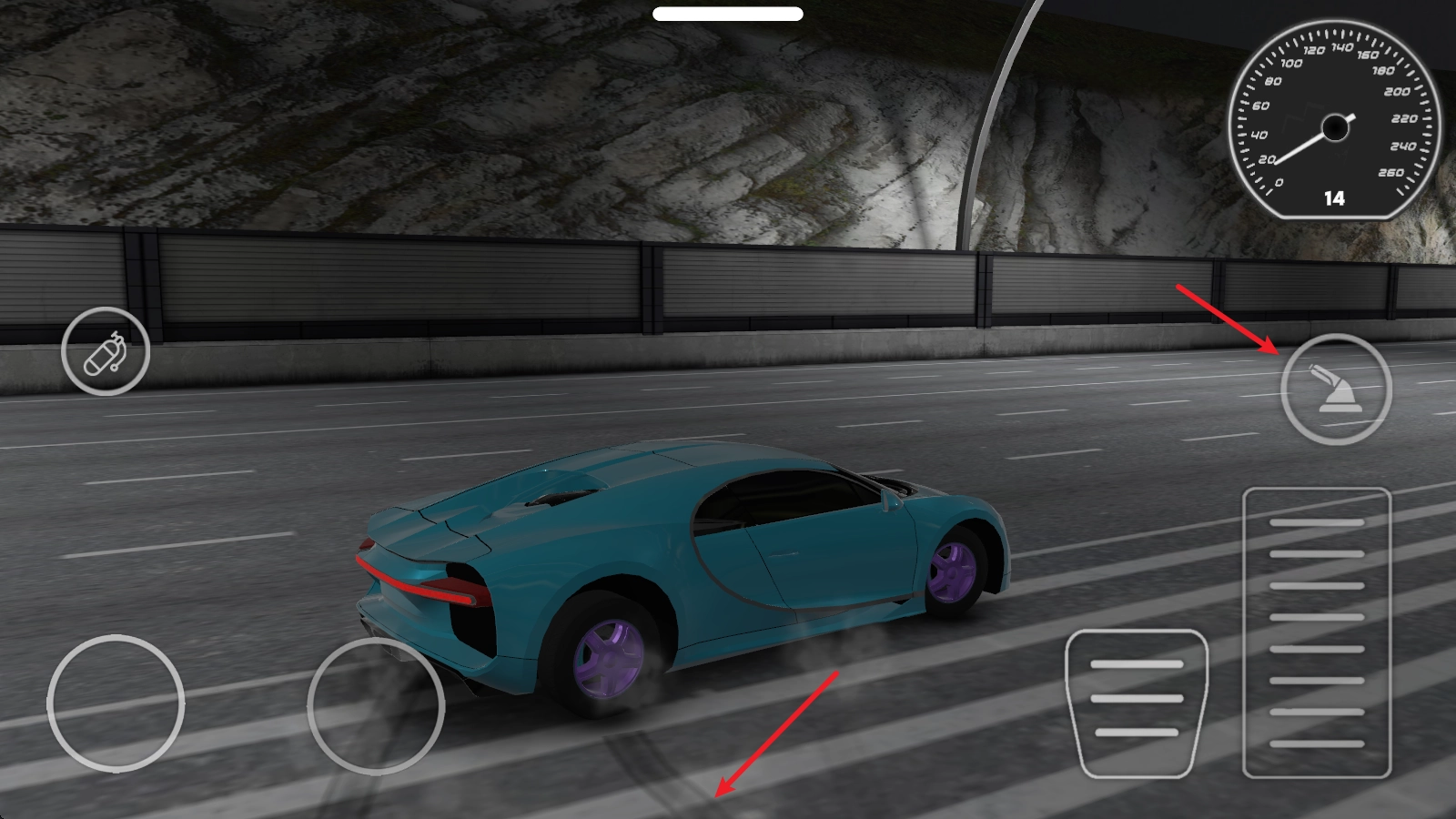 右侧踏板上的按钮为手刹,在转向的时候按住可以进行漂移。