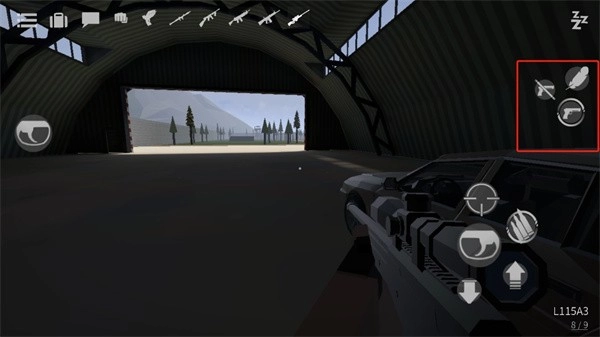 4、点击右侧的“手枪”按钮即可获取枪支,使角色切换至持枪状态,点击中心位置可进行开枪操作,“+”号按钮能够添加新的靶子角色。