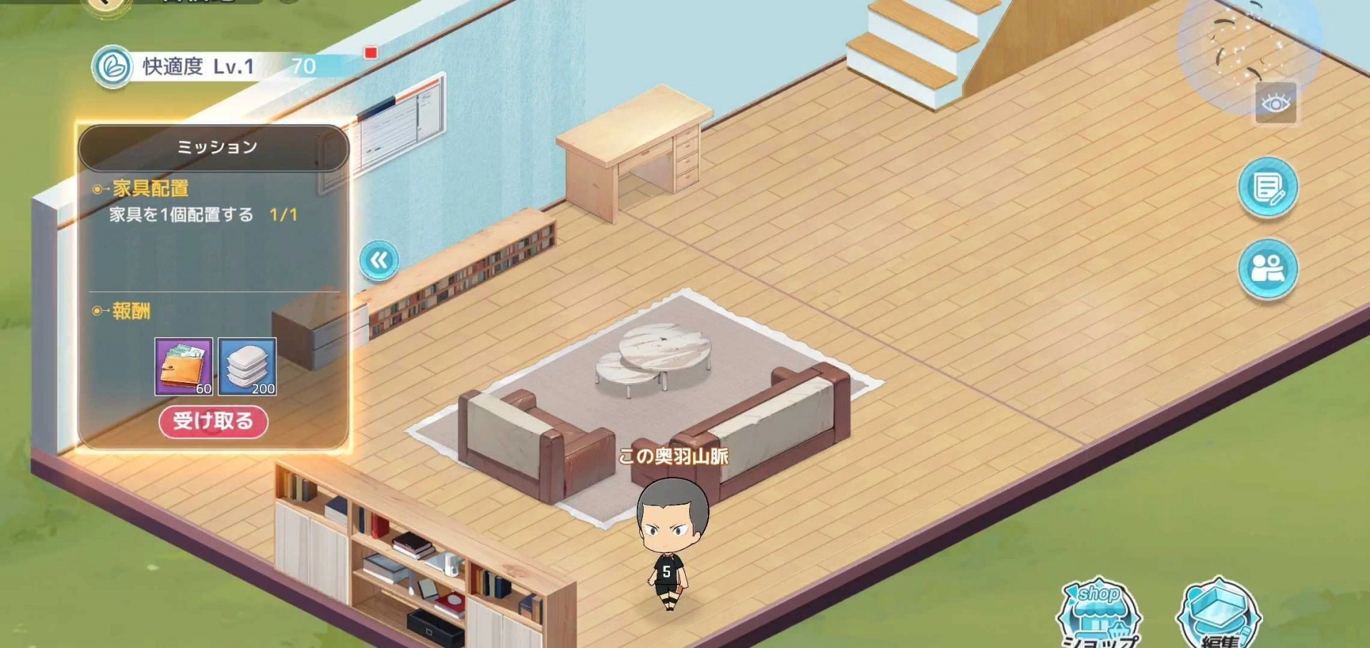 训练营的每个房间都支持摆放家具。家具的形状与颜色丰富多样,您可以借此打造出风格各异的房间。收集各式家具,打造专属于您的独特空间吧。