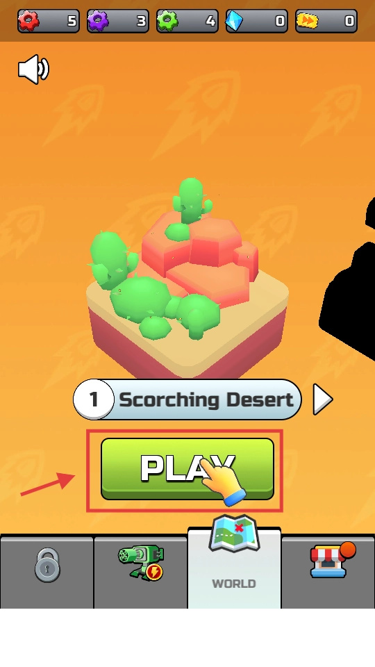 点击【PLAY】按钮进入【ScorchingDesert】场景,选择带有特殊属性的子弹,通过消灭丧尸来获取资源。