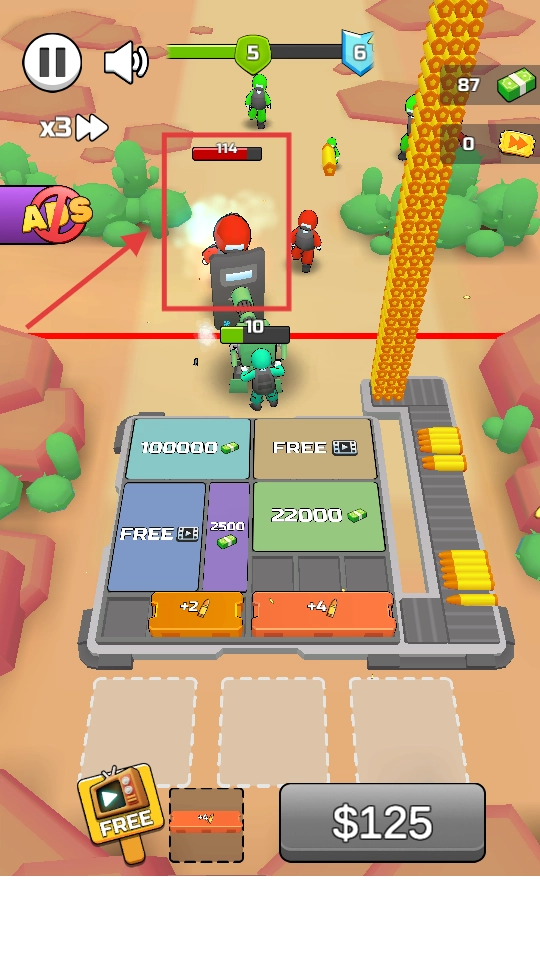切换士兵来应对高血丧尸,花费【$125】扩建炮台,以此提升输出能力。