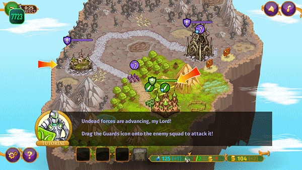 点击游戏底部的各个图标即可使用各类技能。游戏里有不同的兵种和技能,要怎样搭配得当,就需要玩家们动动脑筋了。