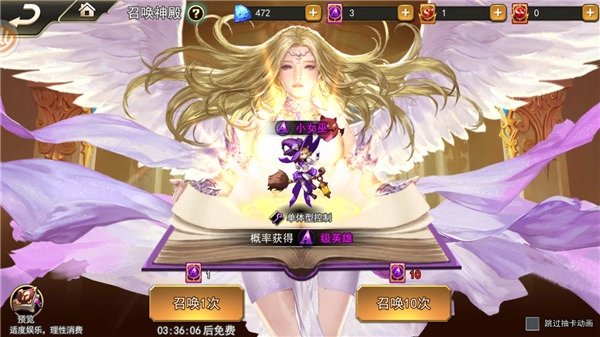 【PS:召唤页面会提供当日必得碎片英雄的试玩机会哦~大家可以先体验一下,再决定要不要抽取呢~】
