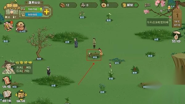 1、比如采集树枝。点击树枝。