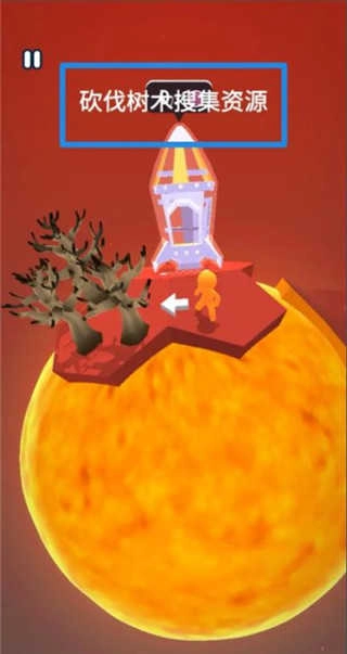 2、挑战开始后,第一步是砍伐树木来获取基础资源,以此为后续的发展奠定基础。