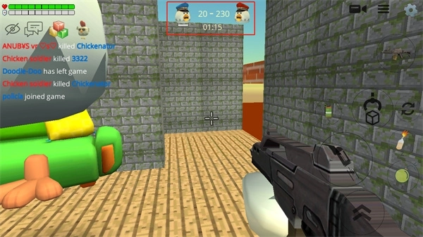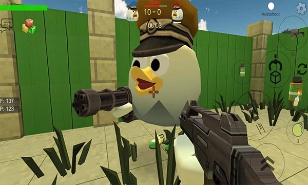 小鸡大作战(ChickenGun)是一款以小鸡为主角的大逃杀射击游戏,玩家将化身为可爱的小鸡进入战场,在复杂的3D迷宫地图中进行生存较量。玩家可以通过左下角的摇杆操控角色移动,通过滑动屏幕来调整视角,当发现敌人时,点击右下角的按键即可发起攻击,在倒计时结束前消灭所有对手就能获得胜利。游戏提供了多种多样的武器道具,从枪支炸弹到防御装备,巧妙地使用这些道具能够扭转战局,此外还有各种滑稽的装扮,可以让你的小鸡更加亮眼。游戏采用专业的3D引擎打造出精美的画面,融合了5V5团队对决、普通和困难模式,同时支持沙盒单机和联机玩法。游戏操作简单,容易上手,快来开启你的小鸡冒险之旅吧。