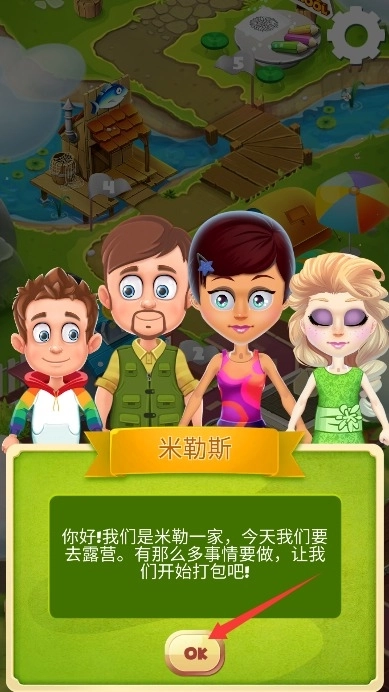 1、游戏开始后,米勒一家打算去露营,第一步得先把旅行前的行李打包好。