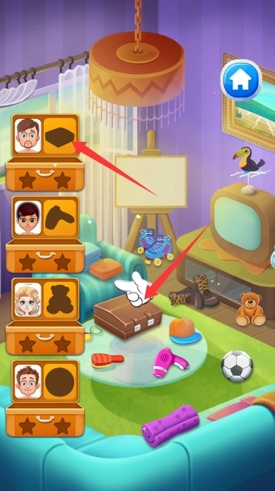 2、把各类需要的物品精准拖拽到对应的行李箱里,有条理地整理好全家人出行要带的行李。