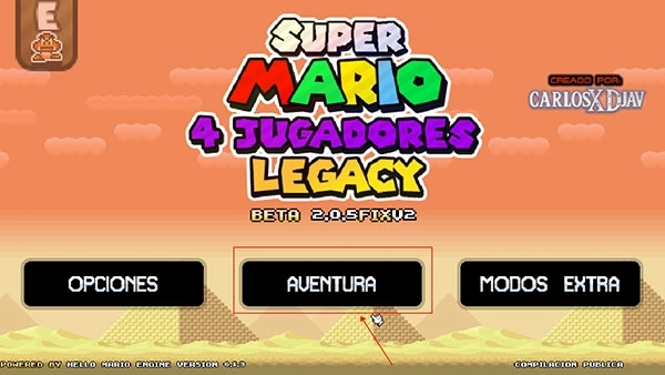 马里奥制造新手攻略1、并打开游戏,点击中间的“AUENTURA”。