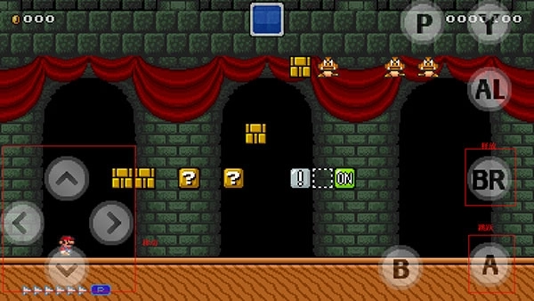 7、此时,“A”键对应跳跃动作,“BR”键对应发射操作,接下来就可以开启马里奥的闯关之旅啦!