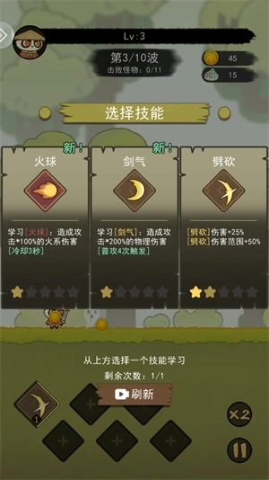 2、丰富的技能等你去选择,每次获得的技能都是随机的。