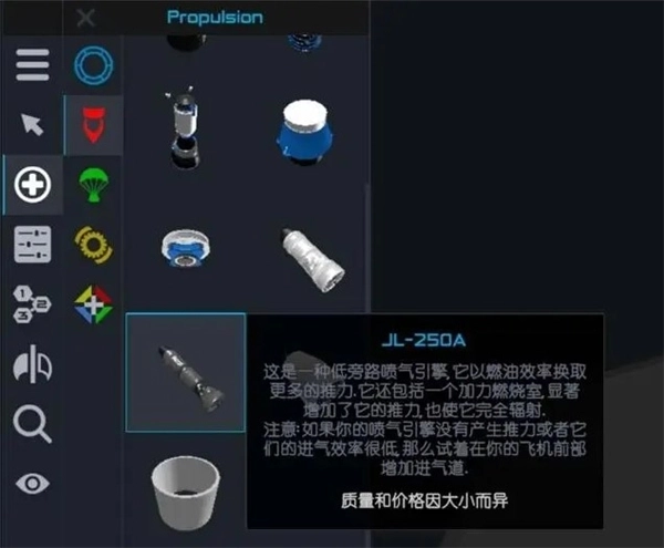 调整发动机的方式多种多样,像改变动力循环、燃烧压力、万向节活动范围、燃料类型,还有对喷嘴性能与视觉效果进行调节都可以。你能够自定义引擎,让它成为助力升空的动力核心,或是打造为超级优化的真空引擎,把Isp最大化以满足星际旅行的需求。发动机的性能还会对飞行时的视觉呈现产生影响,比如排气管会依据自身和大气压力的相互作用而发生膨胀或收缩。冲击钻石看起来很美观,可它却是发动机性能不佳的信号!要是你不在意这些细节,那直接加装一个预制引擎然后点击启动就好啦!