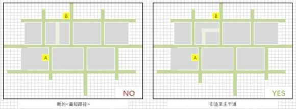 TIP2:引导人流至主干道!把人们往主干道引导。铺设小路过程中,要防止产生新的“最短路径”;在增添主干道的分支道路时,需时刻留意是否错误地让小路承担了主干道的交通压力。