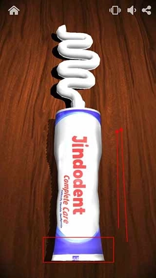 4、点击之后,页面上会出现一支拧开盖子的牙膏,此时我们从顶部往上挤。牙膏会越挤越多,挤完之后又会重新开始,这个过程非常减压。