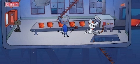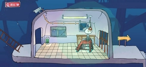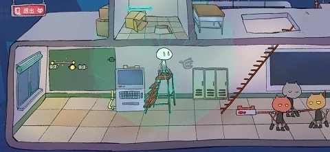 下一关要让兔子变得邪恶,之后你就能拖动物品了,把椅子拖过去,再拉下拉环打开门