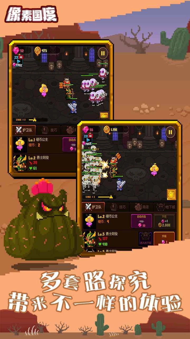 像素国度是一款奇趣刺激的像素地牢冒险玩法类型的手机游戏,多样的挑战方式上感受极致的输出,同时也是能点击不同的战斗方式,去冒险在未知的世界里面,游戏的画面设置上也是刺激十足,在战斗的时刻上给你不同于一般的战斗趣味,多样的关卡上也是考验你的智慧对决,但最值得考验你的勇气!
