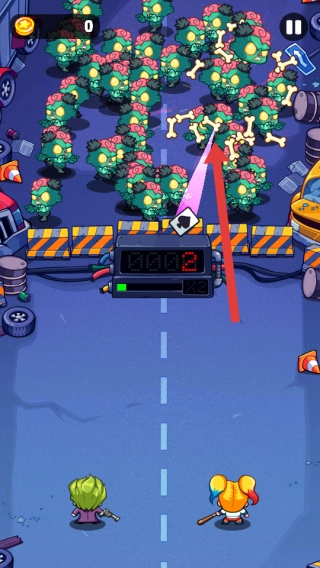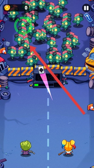 战斗时,顺着箭头所指的敌人方向发动攻击,就能精准击中目标,迅速对僵尸造成伤害,从而有效推动战斗的进展。