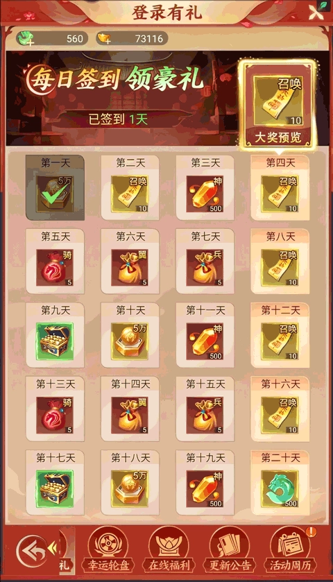 活动:打开七日礼界面,参与各类活动并通过福利菜单,就能领取仙玉奖励。