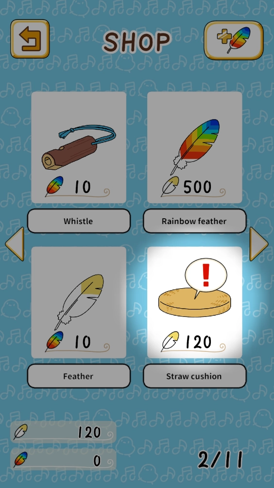 游戏里有各式各样的小物件,坐垫、食物、彩色羽毛等一应俱全,你能够购买装饰,装点属于你的森林。