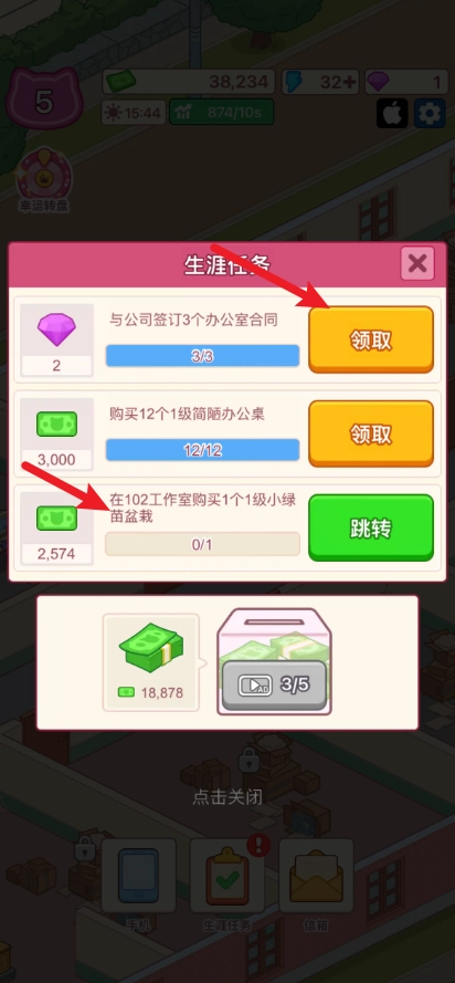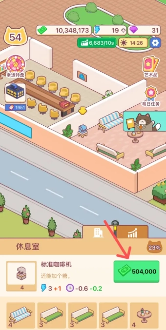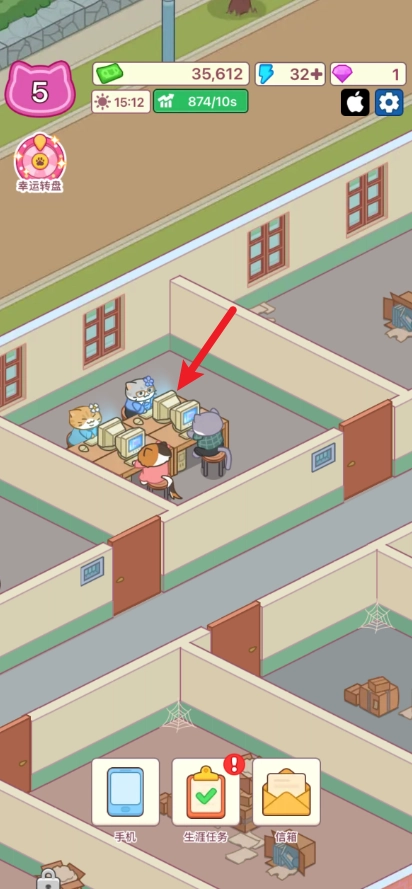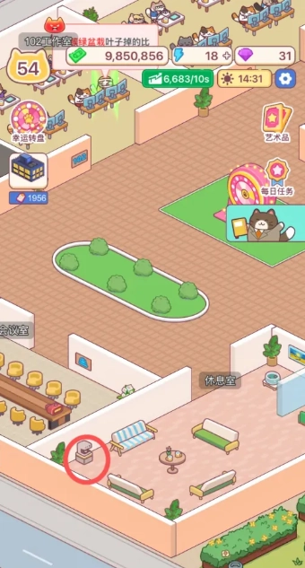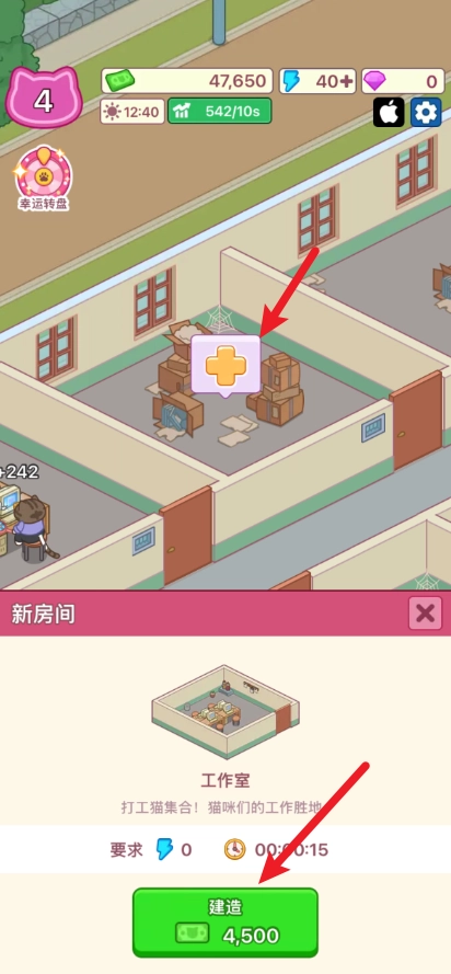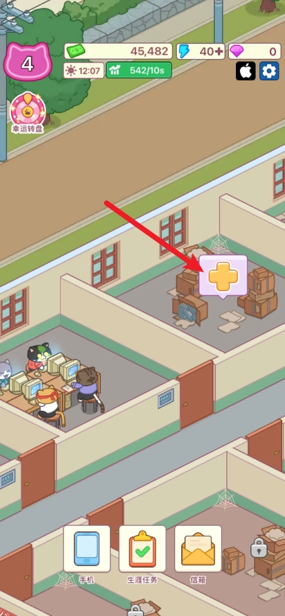 游戏中,我们可以点击空闲的办公室进行建设。