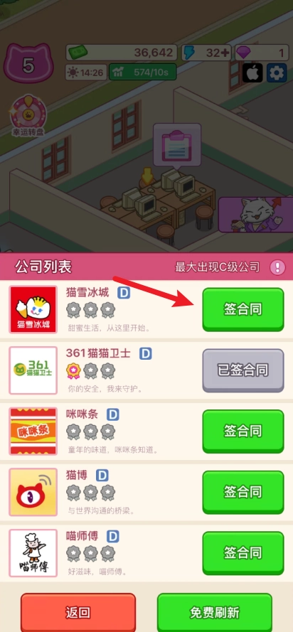 签订合同后,猫咪们便会前来工作,帮你赚取资金。