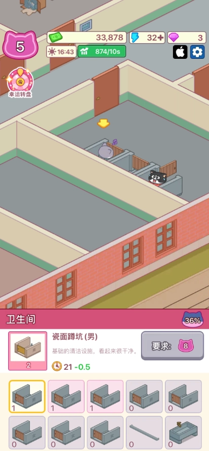 除了办公室外,我们还可以修建卫生间等设施,以此提升猫咪们的工作效率。