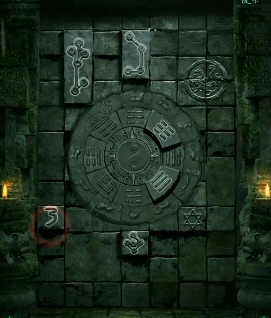 回到中间那面鬼画符墙,把左右两侧的鬼画符都按成下图所示的样子,门就会打开,进去后是新场景,第一章到此结束。