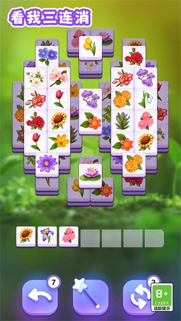 《看我三连消》是一款休闲耐玩的经典三消闯关小游戏,以鲜花匹配为核心主题,为玩家提供了丰富多样的鲜花类型。在最新的安卓手机版本中,游戏采用精致细腻的卡通画风,搭配绚丽多彩的视觉效果,为玩家带来了舒适愉悦的视觉体验。游戏延续了经典的三消玩法机制,玩家只需将三个相同的鲜花图案进行匹配,即可完成消除操作。