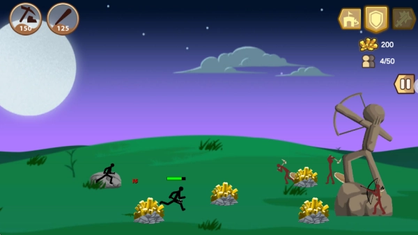 点击画面左上角的兵种图标,派遣己方火柴人投入战斗,目标是摧毁敌军基地的雕像,运用策略来赢得胜利吧!