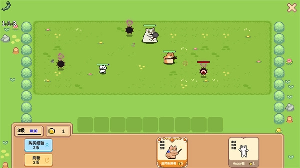 关卡每次都会随机生成一些敌人,玩家需要把猫咪布置在恰当的位置,这样就能自动触发战斗了。